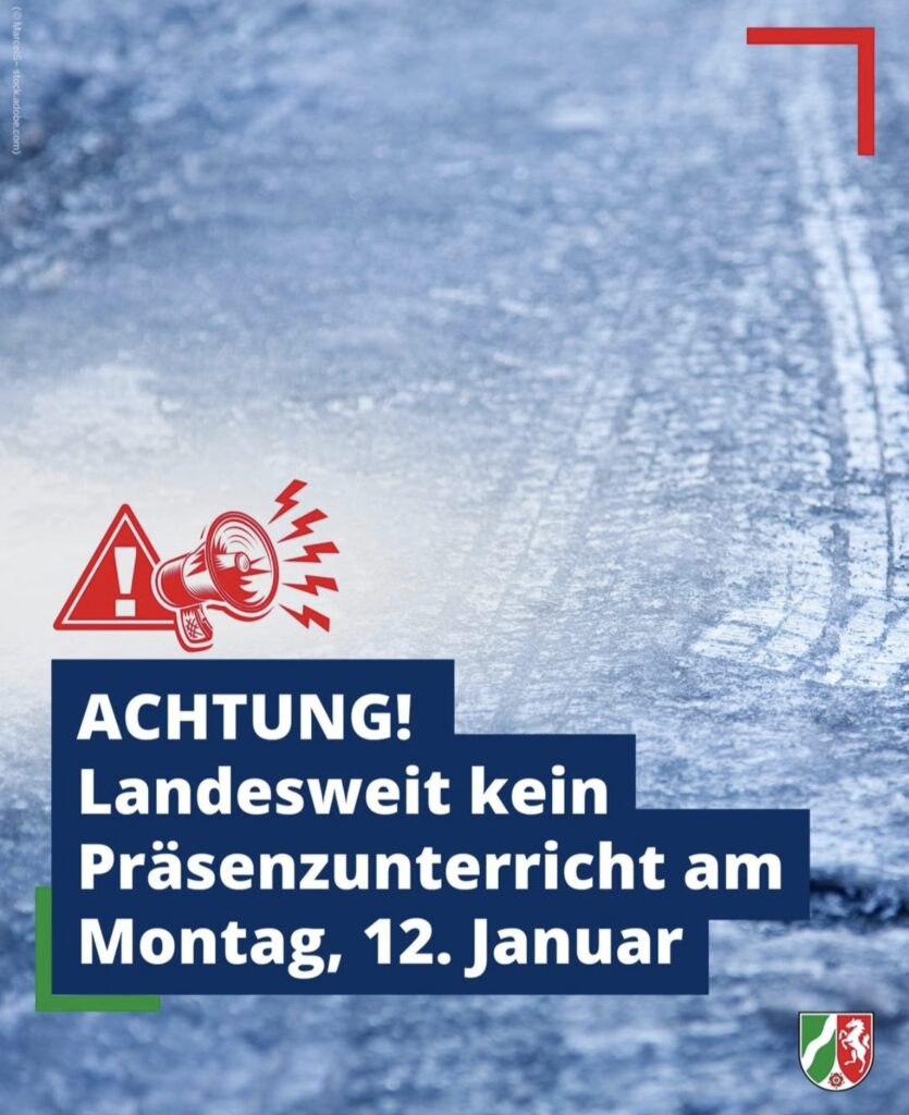 aufgrund einer Vorabwarnung des Deutschen Wetterdienstes wird für Montag, den 12. Januar 2026, eine erhebliche Glatteisgefahr auf allen Verkehrswegen erwartet.